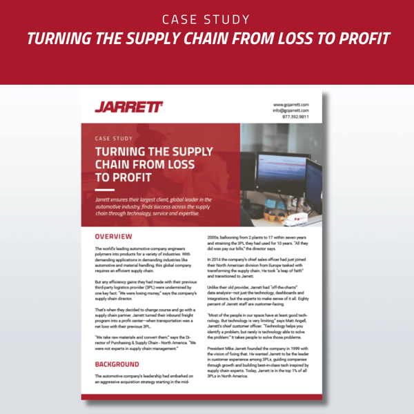 After the leading global automotive company found they were losing money with their previous third-party logistics provider, they found the Jarrett difference. With technology, customer service and supply chain expertise, this company was able to double their growth by partnering with a provider that helped them:
